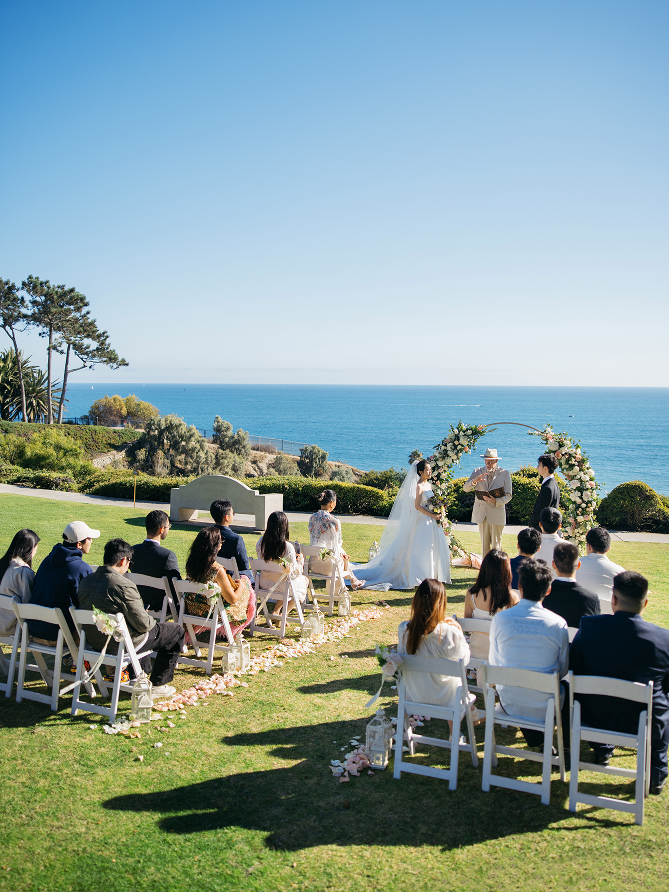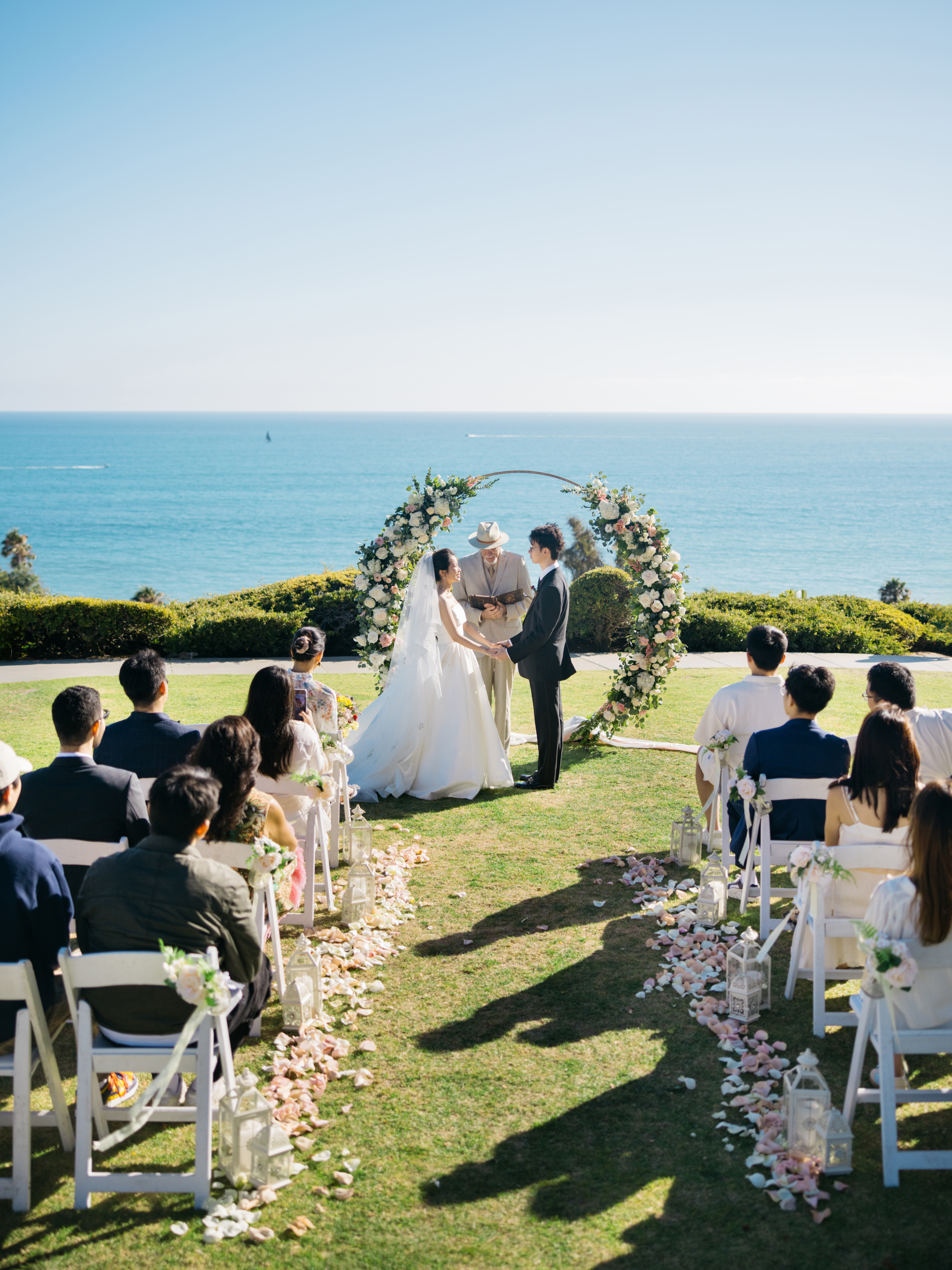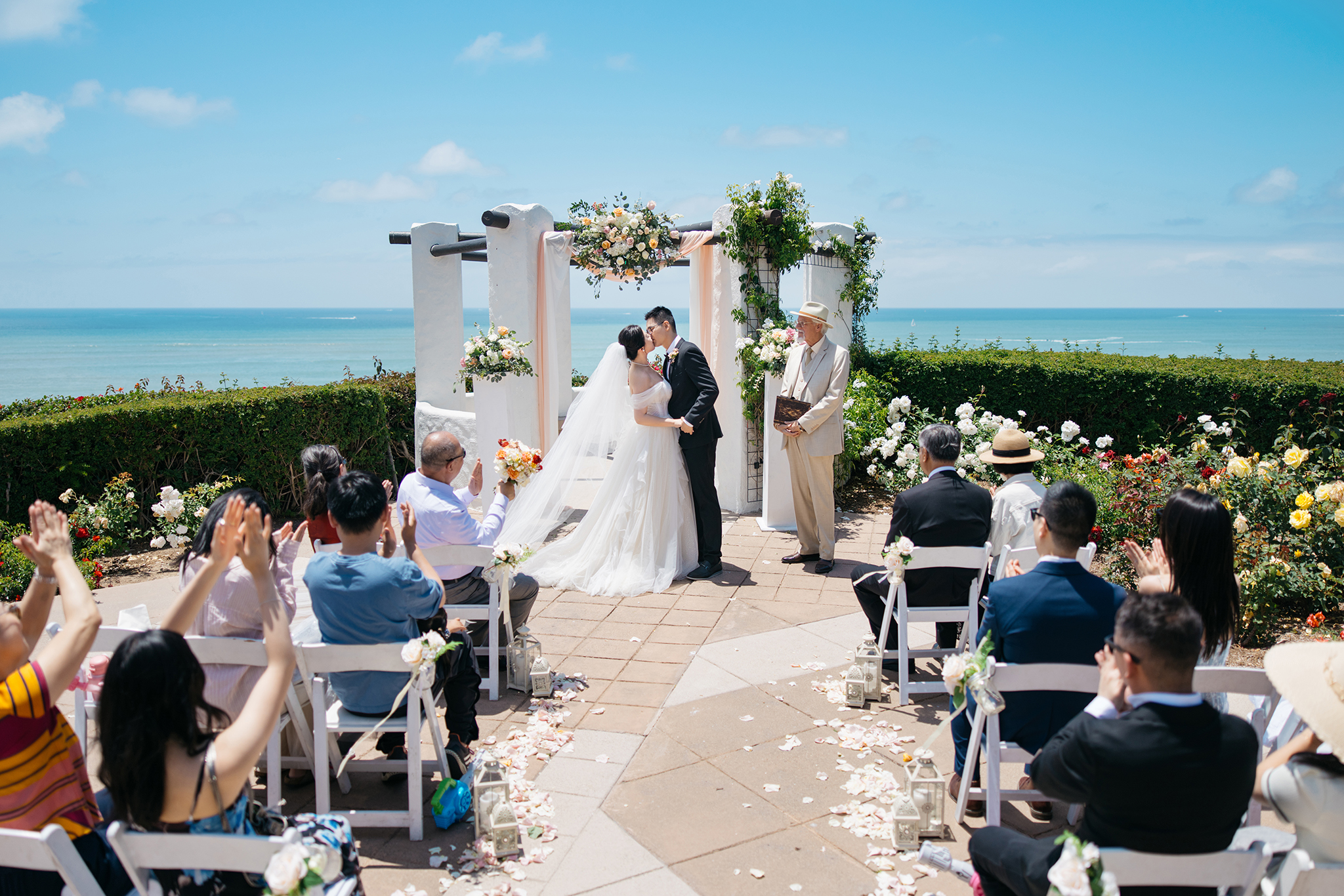 Wedding Bowl 位于圣地亚哥悬崖边,被誉为圣地亚哥地区最美的海边婚礼场地之一。能俯瞰广阔的太平洋,碧蓝的海水与天空相接,景色壮丽。大海的微风、海鸥的鸣叫,让整个婚礼仪式充满浪漫气息。这里是一个隐藏在绿意盎然的小型公园中的场地,被低矮的树篱围绕,营造出一种私密感,同时又不会遮挡海景视野。这个场地的日落时分最为迷人,金色阳光洒在新人的身上,搭配海浪拍打的背景,是最理想的婚纱照取景地之一。周边的悬崖、礁石、步道也提供了丰富的拍摄元素。这个场地属于公共公园区域,需要提前向圣地亚哥市申请 婚礼许可证(通常需要提前3-6个月预定)。permit 260, 这个场地需要自己预定。